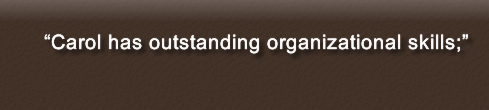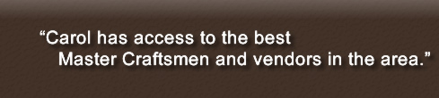 Over 35 Years, Carol has developed a unique team of experts and significant sources for product and professional craftsmanship including established artisans in: Woodworking, Glassworks, Plastics and Acrylics, Carpeting, Fabric and Textiles, Stone Work, Lighting, Accessories, and many other specific trades.